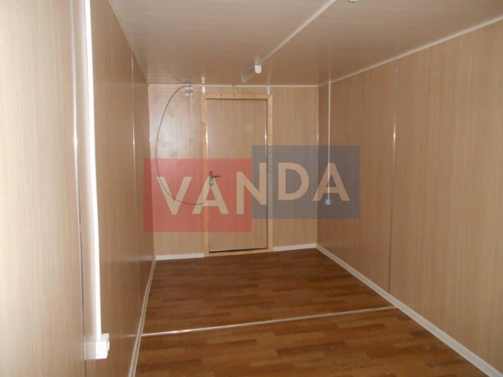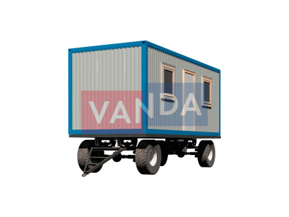 Контейнер на колесах состоит из металлического каркаса, который выполнен из профиля и укреплен сварным швом. Крыша покрыта листовым холоднокатанным окрашенным сварным металлом. Внешняя сторона стен обшита оцинкованным профнастилом. Внутренний каркас вагончика изготовлен из бруса. По всему периметру помещение утеплено и пароизолировано. Внутренняя отделка осуществляется по выбору заказчика. Это может быть вагонка или оргалитовые листы. Пол вагончика состоит из обрезной доски, пароизоляции, утепления поверх которого уложены ДСП. Вагончик оборудован дверью из оргалита и деревянными окнами с двойным остеклением.