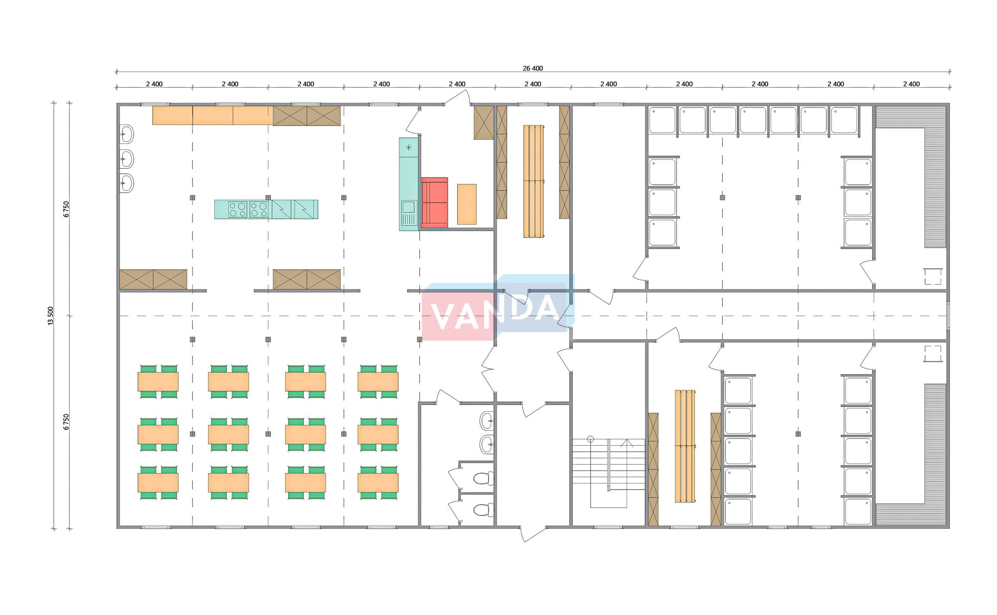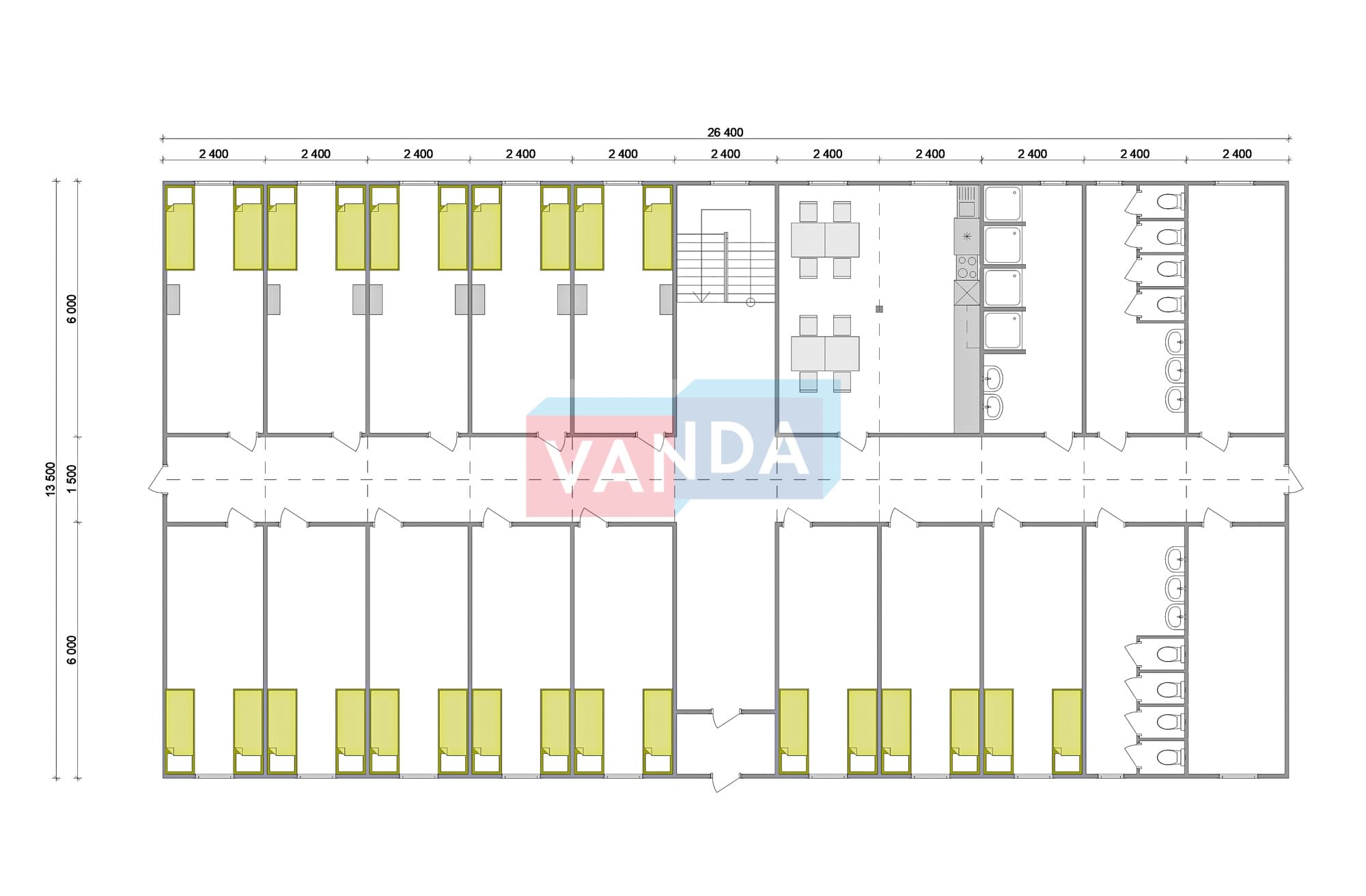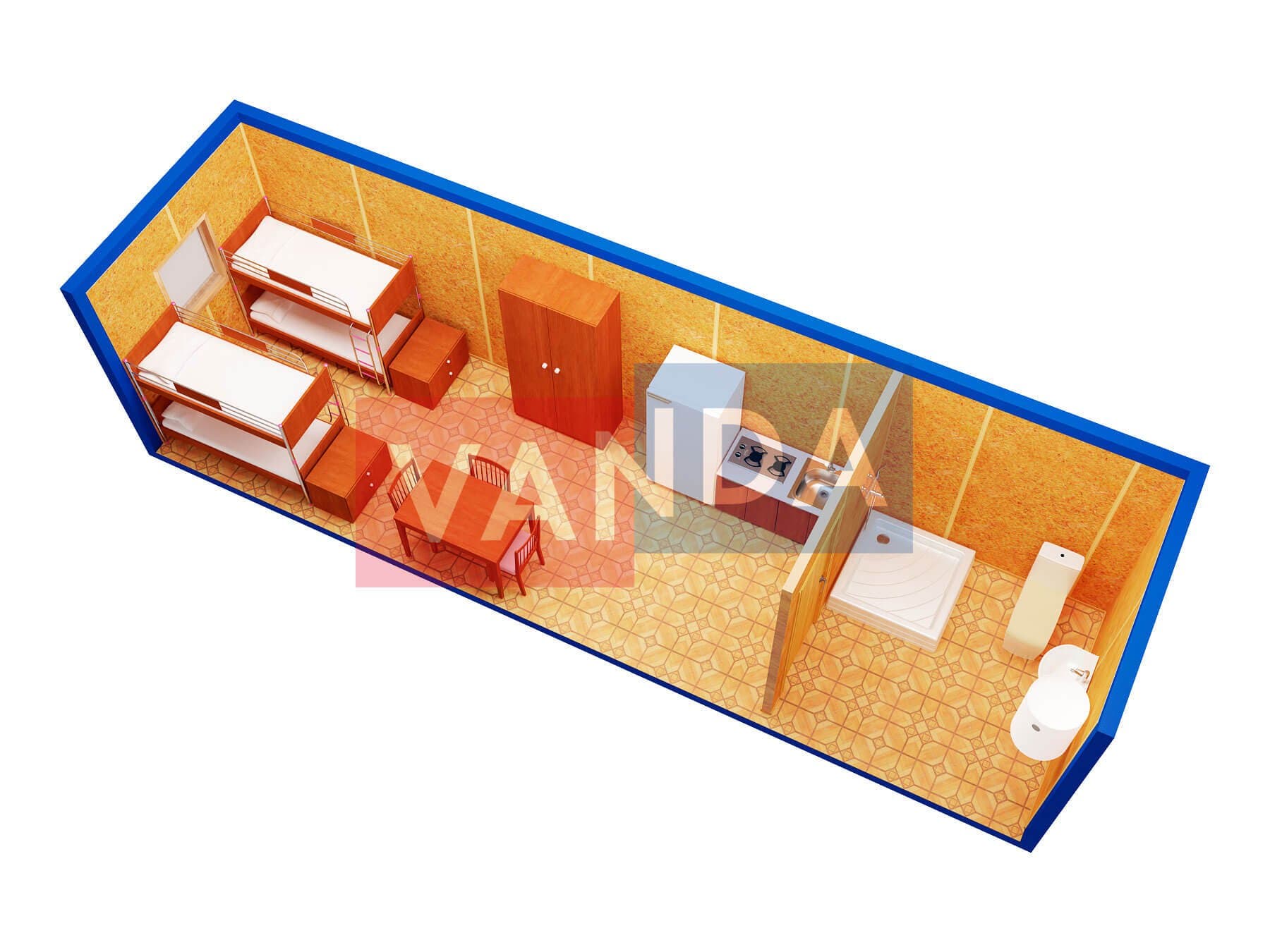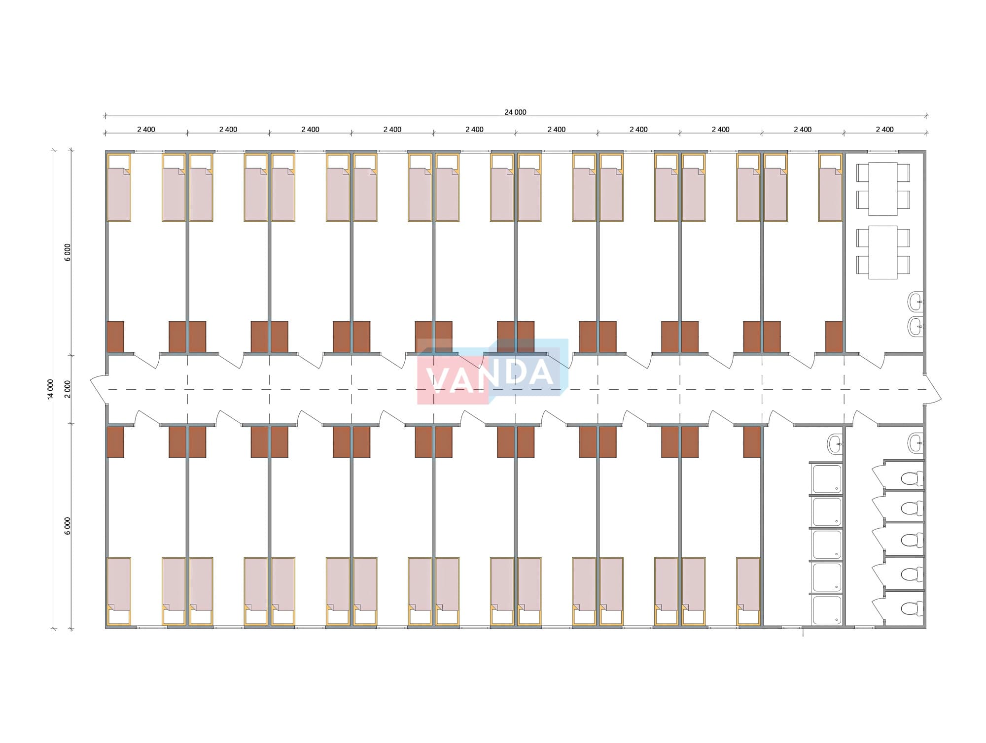 Проект вахтового посёлка 14.0х57,6 14x57.6 806.4 OSB 9 мм. Оцинкованный профлист 20 700 000 р. Уточняйте у менеджера