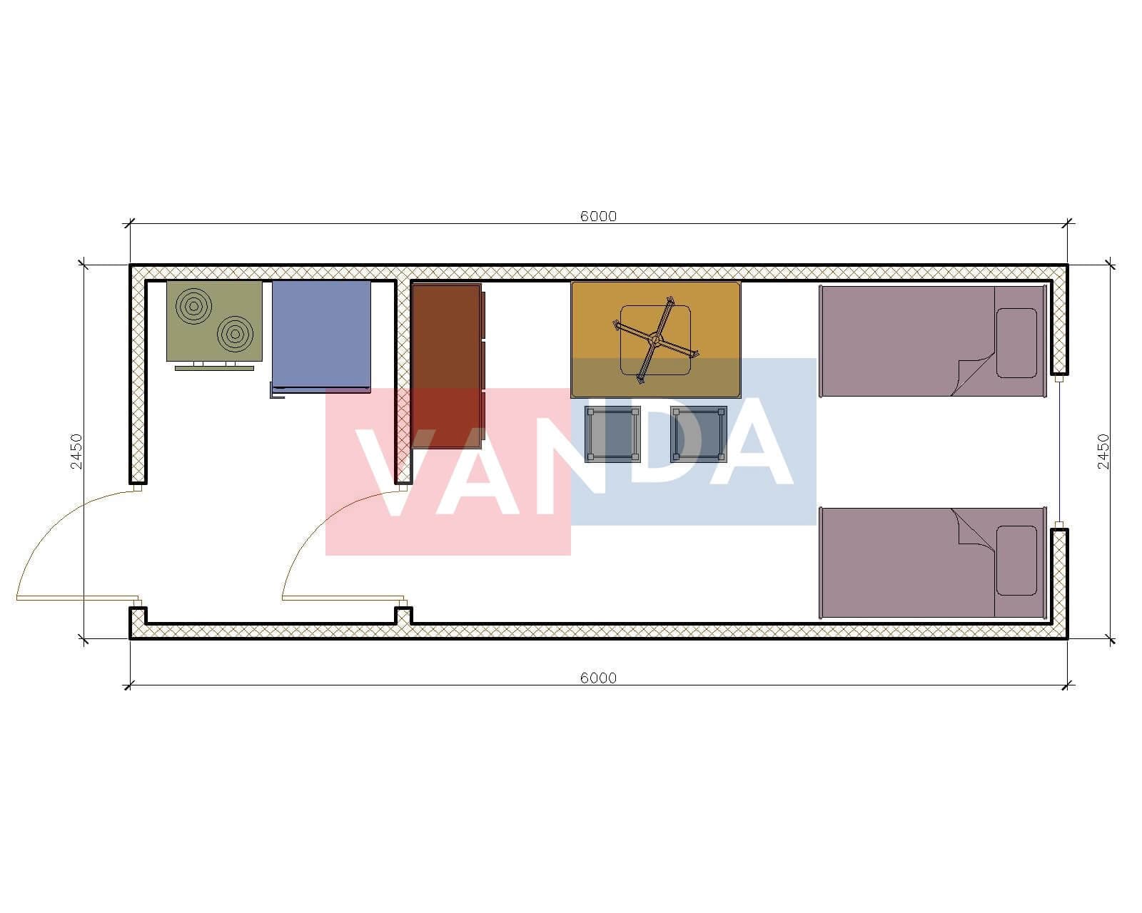 Бытовка металлическая распашонка 6х2,45 5.85x2.4 14.04 Вагонка деревянная Уточняйте у менеджера 118 500 р. Уточняйте у менеджера
