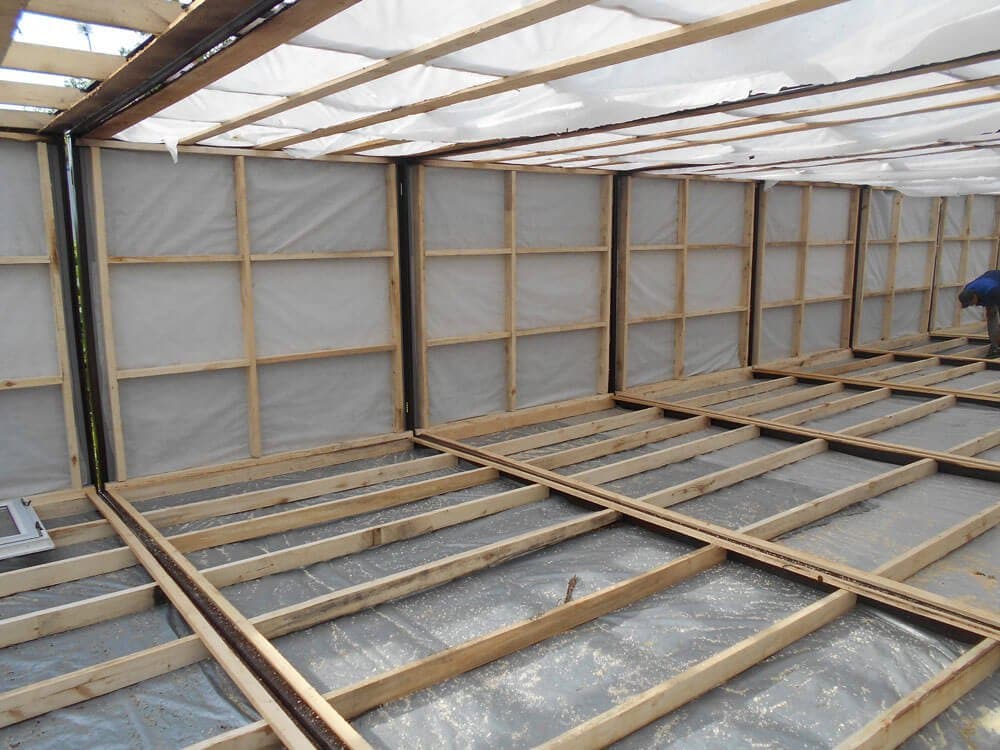 • замену внутренней обшивки, напольного покрытия, окон и дверей;